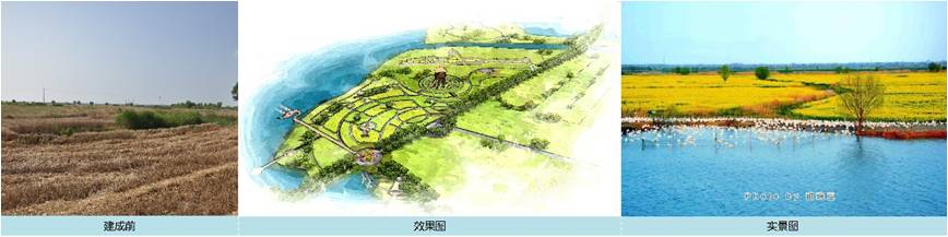 2014年,大地風景上海院受高郵市市委市政府、高郵市旅游局委托,對新民灘兩萬余畝范圍進行了總體策劃及核心區3724畝范圍修建性詳細規劃。規劃團隊深入現場數次踏勘,與淮河管理委員會、水利局、農業局、新民灘所在鄉鎮進行了多方面深入溝通、協調,確保合理處理生態保護與旅游開發建設、旅游開發與當地老百姓生產生活和諧統一的基礎上,經過數輪研討、匯報、論證,規劃于2015年通過評審。項目隨即在高郵市旅游局的大力推動下,開始緊鑼密鼓的建設。