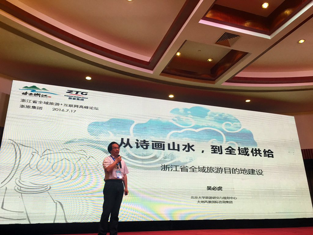 2016年7月17-18日,浙江省“全域旅游+互聯網”高峰論壇在浙江建德舉行。北京大學旅游研究與規劃中心主任吳必虎教授受邀參加本次論壇,并發表《從詩畫山水到全域供給:浙江省建設全域旅游目的地建設》主旨演講。