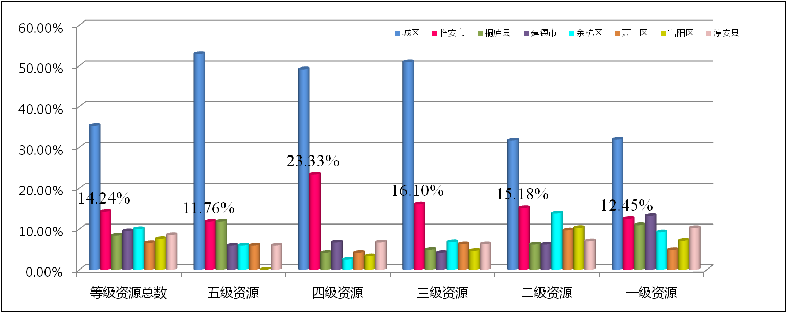 圖3:杭州市各地區旅游資源在全市所占比率對比分析圖