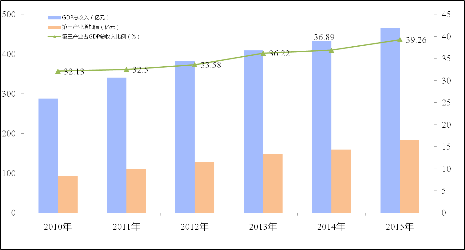 圖6:近六年臨安市第三產業增加值與GDP對比分析圖