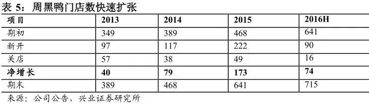 周黑鴨是國內領先的零售食品品牌,引領鹵制食品銷售由餐桌食品轉向休閑食品,專業生產、營銷、零售鹵鴨和鴨副等休閑鹵制品。公司產品定位休閑娛樂食品,專注鹵鴨及其制品的創新研發和品牌營銷,致力為18~35歲女性為主年輕消費群體提供時尚、休閑、娛樂為一體的鹵制食品。公司通過上游原材料直采+下游?中央工廠+直營門店?的經營模式打通供應鏈,自建覆蓋全國的自營門店網絡,通過與淘寶、美團、微信等多平臺合作輔助線下渠道,實現多渠道銷售。截止2016年上半年底在全國運營715家自營門店,累計營業面積約2.4萬平方米,2016~2017年計劃分別新增187家和180家。