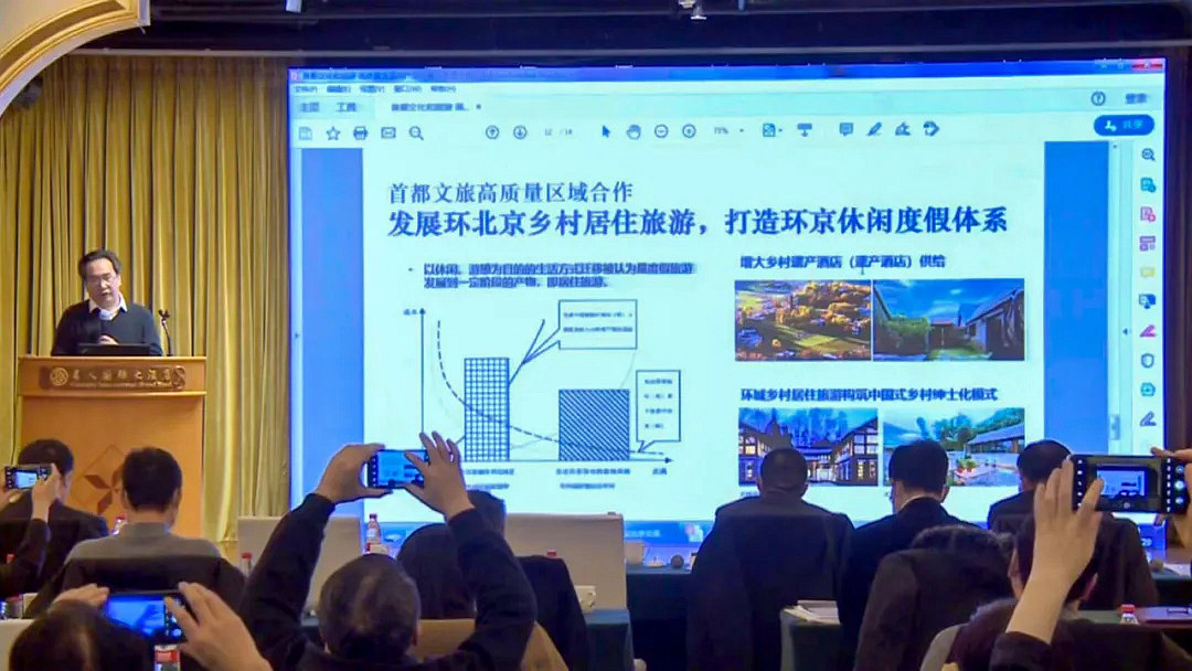 吳必虎教授開篇談到了首都旅游的外循環(huán)、大循環(huán)、內(nèi)循環(huán),國外入境游市場增長受挫,總體入京游客量下跌;國內(nèi)入京游增速放緩,游客增長轉(zhuǎn)換細(xì)分;市民在京旅游增速超過外地來京增速。接著說到了首都文旅高質(zhì)量發(fā)展的產(chǎn)品創(chuàng)新,包括旅游公共服務(wù)與居游共享、高端產(chǎn)品開發(fā)與大眾文化消費(fèi)、文物建筑活化利用以及場景創(chuàng)新等。最后吳教授通過北京郊縣發(fā)展鄉(xiāng)居旅游的政策創(chuàng)新、打造環(huán)北京休閑度假體系、環(huán)首都旅游經(jīng)濟(jì)圈等話題談及了首都文旅高質(zhì)量發(fā)展的區(qū)域合作。此外,魏小安就《泛文旅·大生活—迎接2021年》、戴斌就《人民群眾對(duì)文旅消費(fèi)需求是抗疫勝利的根本力量》、張輝就《從消費(fèi)側(cè)加強(qiáng)旅游產(chǎn)業(yè)發(fā)展的制度改革》、宋瑞就《新挑戰(zhàn)與新格局下的旅游消費(fèi)》發(fā)表了主旨演講。
