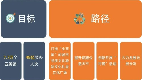 實現路徑:打造“小而美”的城市書房、文化驛站、文化禮堂、文化廣場;提升設施公益水平;創新開展“村晚”活動;大力發展云展云聽。