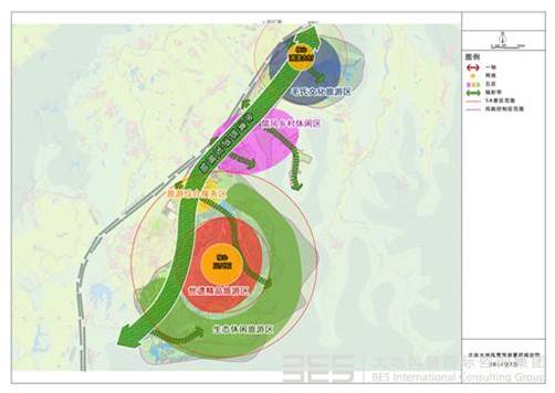 旅游綜合服務區:包括新老游客中心、余家塢村、倒影湖片區,同時具備入口形象、鄉村休閑和綜合服務功能。