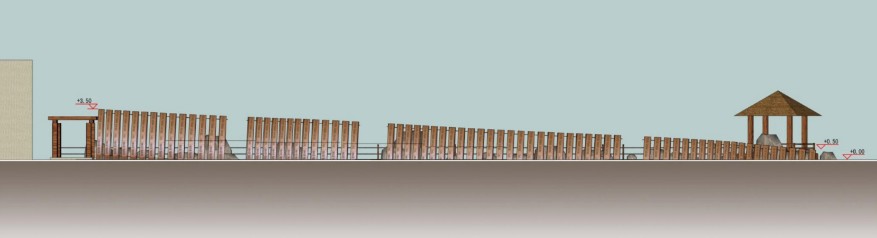 天涯書簡,以古代書簡為設計元素,是展示天涯書院浪漫氣息的存在,一排傾斜生長的竹簡代表著天涯海角這塊文化土地的肥沃和無私的撫育,給人以蒸騰向上的感覺,在為天涯書院平添文化氣息的同時增添了書院不少歷史氛圍。天涯書簡充分挖掘歷史文化元素,結合現代自然生態環境,共同打造天涯海角景區浪漫的文化宮殿。天涯書簡的通透性使得整個空間成為半私密開敞空間,豐富了空間的節奏感和韻律感;而且,古色古香的書簡,富有高質量的文化和藝術氣息,古典與現代的完美結合使其成為天涯文化區的一大突出亮點。