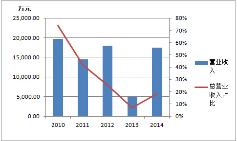 園林園藝是世博集團的核心業務之一,但由于對內部業務依賴性過高,一直以來市場競爭力不高,市場占有率也較低。2011年集團對園藝公司增資1,000萬,2014年又購買江南園林80%的股權,實現了公司與江南園林在資本優勢與市場優勢方面的有效互補,開始了集團向全國市場拓展的第一步。2014年江南園林實現收入7,935.21萬元,毛利率在21%左右。