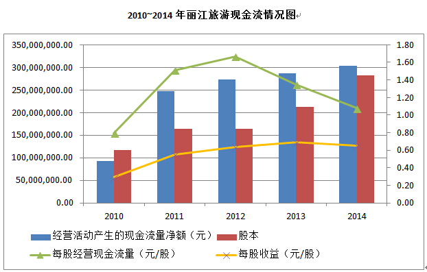 2010~2014年麗江旅游現金流情況圖