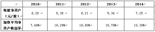 麗江旅游2010~2014五年的每股凈資產分別為6.28、5.38、6.21、5.34、7.25元,大體維持在5~8元之間,與同行上市旅游公司——宋城演藝每股凈資產6.3472元的水平基本持平。結合前述的資產負債狀況,麗江旅游每股凈資產的平穩調整和增長,表明公司在實現資產較快增長的同時,亦充分發揮金融杠桿作用,通過適當擴大負債來獲得融資,以推進公司業務的發展,因此公司凈資產增長一度較為有限, 到2014年隨著企業投資盈利的逐步實現,公司凈資產值明顯提升,每股凈資產亦隨著推至高點。