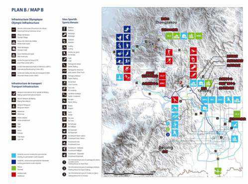 二、交通便捷的原則:北京到張家口乘坐高鐵只需要50分鐘左右的時間,國際雪聯等七個國際體育單項組織都曾明確表示這個距離是完全可以接受的。而且,并不是申辦冬奧會才修建北京到張家口的高鐵,這一段高鐵實際上是京包高鐵(北京到包頭)的一部分,是國家十二五規劃里的一條線。北京到張家口的高鐵是170公里左右,這條鐵路的設計速度是每小時350公里,從北京到張家口的大概時間是52分鐘。另外,運動員從運動員村到達最遠比賽場館的車行時間最好不超過30分鐘,規劃中應將運動員村設置在交通便利的區域,最大限度的保證運動員迅速方便地到達大部分的比賽場館。