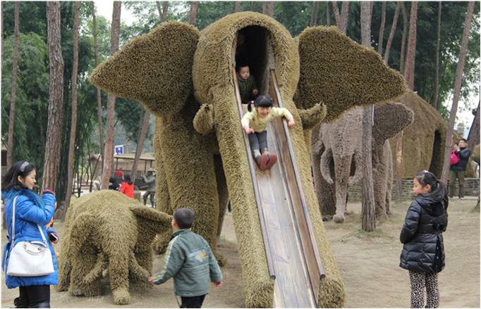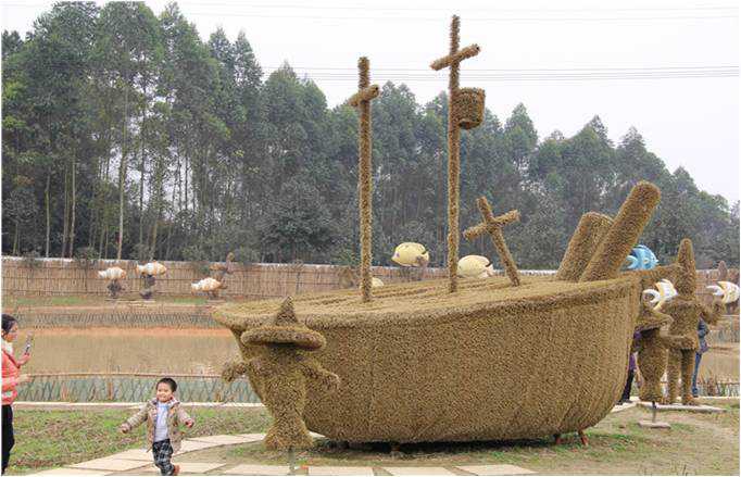 “我們都是稻草人”的草藝主題園區將滾鐵環、扯陀螺、梭梭板、蕩秋千、跳皮筋、蹺蹺板、倒糖元、捏唐人、爆米花等傳統老游戲融匯互通寓教于樂;“當一回農夫,做一次酒人”園區開發了一系列親子粱田、親子酒坊、親子碾坊、親子磨坊、親子廚房等親子體驗活動,讓游客感知“汗滴禾下土”的辛勤與快樂;環游樂園一周布設了很多草藝造型,童話森林、海底世界、歷史典故、錦繡河山、八陣迷宮和各類卡通人物造型分布于田間,構成一幅天真爛漫的“天府童戲圖”。