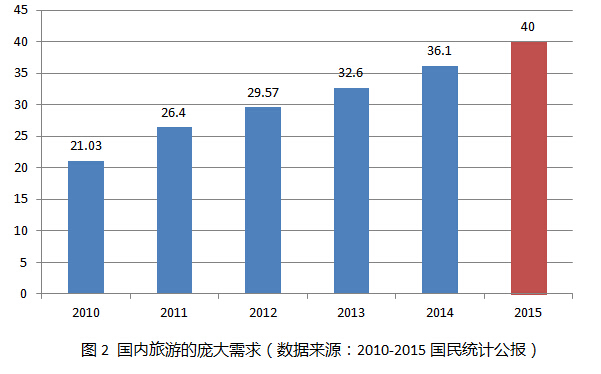 需求是供給的前提和基礎,根據(jù)《國民旅游休閑綱要(2013-2020年)》預計,到2020年,中國國內(nèi)旅游人次接近60億,人均出游達到4.5次,這說明目前國內(nèi)旅游需求市場龐大。