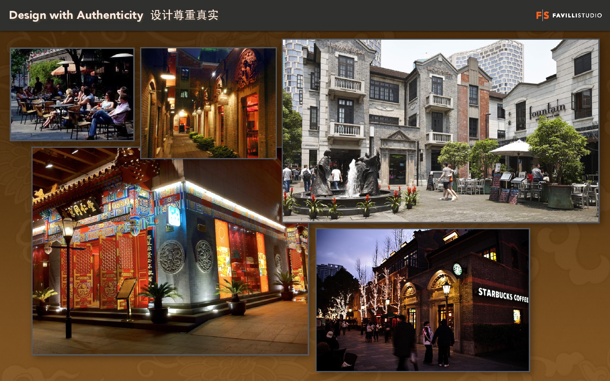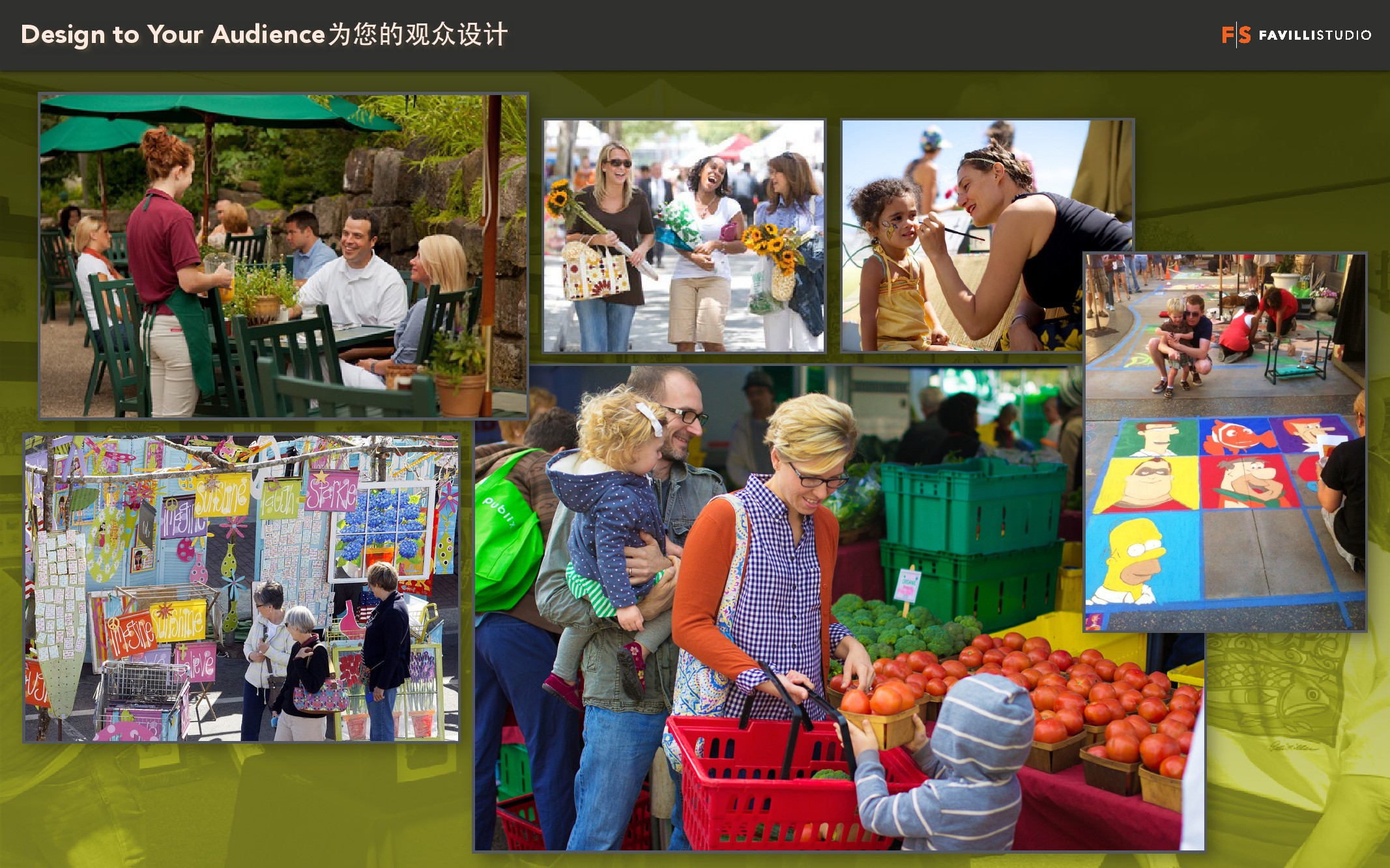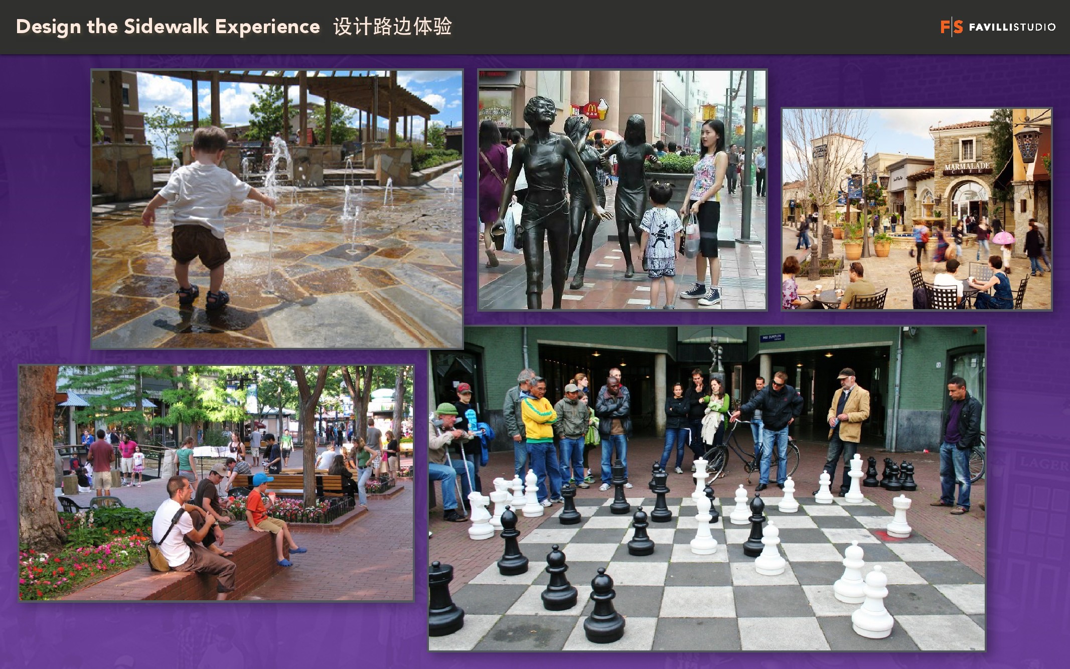 那么最大的挑戰(zhàn)是怎么做才能使我們的項目超越競爭對手,建立情感的締結(jié),才能成為區(qū)域的文化中心。FS并不完全根植于各種中心產(chǎn)業(yè)或者房地產(chǎn)行業(yè),我們的做法代表旁觀者的視角,在FS,我們相信非常重要的是穿上顧客的鞋子走路,從顧客的視角、體驗、體察,才能理解他們的感受。只有這樣,作為設(shè)計師的我們才可以想像搭建感受平臺才可以建立情感的聯(lián)系,才可以在人們進行休閑活動,甚至餐飲購物的時候,將他們吸引,并且使他們參與到活動中來。