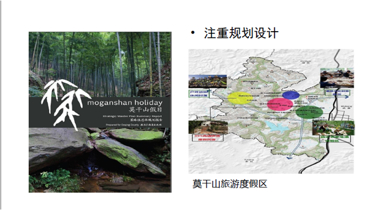 2、要重視規劃設計。規劃設計這塊提的很多了,我這里不想多講。2010年我們請美國阿康姆公司、一道公司做了區域的規劃,當時對我們這個理念的指導還是有用的,可能這個團隊更多的是保護性的開發,所以整個大的思路是整個西部沒有大項目。我們做了一個區塊的小項目,通過小項目形成大的區塊的積聚效應,我們是可持續的。而且我們利用的這些新開發的只給了兩個項目,裸心谷和法國山區,接下來還會有30個,大部分我們是利用閑置的房子去做的。所以我們是再利用、開發,形成積聚效應,注重生態保護與村民互動,融合發展的理念,所以我們還會有村莊的氣息。