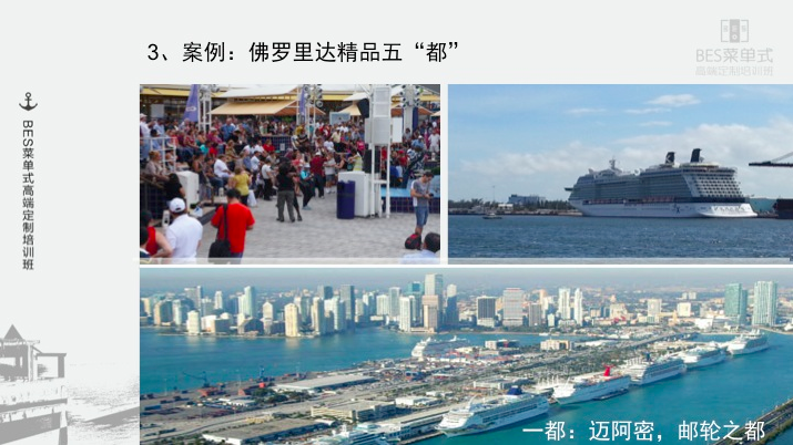 一都:邁阿密郵輪之都。邁阿密濱海旅游非常突出的是郵輪,不僅郵輪母港大,還吸引全世界多數郵輪公司設立總部,年接待郵輪游客占全球郵輪客人的40%以上,可謂當之無愧的郵輪之都。