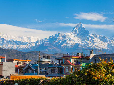 博卡拉是位于尼泊爾中部喜馬拉雅山南坡山麓博卡拉河谷上的城市,東距加德滿都約200公里,與熱鬧喧囂的加德滿都比起來(lái)要恬靜很多,依偎在終年積雪的安娜普納山峰和魚尾峰下,傍著迷人的費(fèi)瓦湖,蒼翠繁茂的植被和壯麗的雪山風(fēng)光形成強(qiáng)烈對(duì)比,成為尼泊爾最受歡迎的旅游地點(diǎn)之一,有“東方小瑞士”之稱。