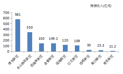 從旅游收入可以發現浦東新區旅游發展最好,其次是浙江舟山群島新區和西海岸新區;