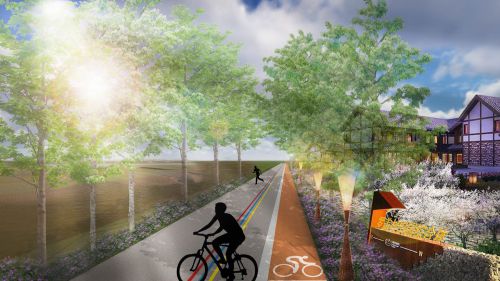 本次規劃設計了“1+1的模式”——“一路一帶”的建設路徑。通過核心大堤路的提質改造,再融入路兩岸文化景觀產業帶的創新打造,共同構筑綠色休閑廊道體系,讓整條國家風景廊道充實飽滿。“一路”指風景道系統工程+驛站體系,構筑核心的休閑體驗交通線;“一帶”為風景文化+全域休閑+產業示范的三大功能合一的體驗空間,為風景廊道融入黃河景觀文化亮點。