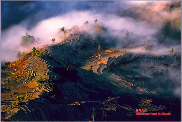 哈尼梯田是一個養眼、養胃、養身、養心的一個大地風景。古老的家園,是我們民族發展的見證,也是多民族融合的見證,它是一個活化石,一個活的農業文化遺產。它的產量持續養育了上百萬世居民族。它的科學價值,如水資源的利用、人居環境選擇、科學田間管理,也見證了哈尼梯田合理樸素的科學體系。從看得見的景觀到看不見的非物質文化遺產,都體現出它的景觀美學價值。同時它也是我們文學藝術家創作的寶庫。也許在科學家眼里它是一個科學系統,在歷史學家眼里它是歷史的一個見證,在攝影家的眼里它是美學藝術的化身,但是對于我們農民來說,它就是我們的家園,土地的糧倉,那么對于我們梯田保護者來說,它是需要保護的一個大地母親。
