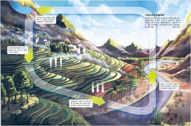 世界文化遺產在紅河評遺的景觀評語中寫道,“紅河哈尼梯田文化景觀所體現的森林、水系、梯田和村寨四素同構”系統符合世界文化遺產標準,其完美反映的精密復雜的農業、林業和水分配系統,通過長期以形成的獨特的社會經濟宗教體系得到了加強,彰顯了人與環境互動的重要模式。它說的就是中國西南少數民族地區人類生存的樣本。