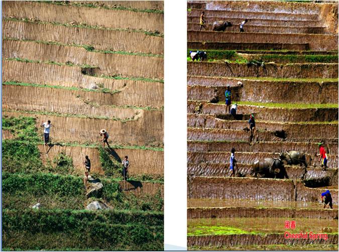 哈尼族傳統的農業里面是不施肥料的,肥力是怎樣保持的呢?一個是山林里沖下來的腐殖土;另一個就是寨子里牲畜的糞便通過水溝沖到田里面去,還有一個就是把田埂上的雜草砍下來,整個冬天放在田里漚,這就是最好的綠肥,再通過各個渠道來補給肥料;另外哈尼梯田之所以持續的一個原因就是冬天放大假,對土地的適度利用也是一個非常好的手段。