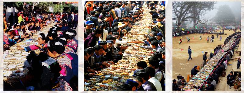 說到節慶,梯田農耕有三大節日。開春的時候要過戰神節,擺長街宴。一到節日,大家都會到林子里去祈求戰神賜予我們五谷豐登、六畜興旺、農耕順利。長街宴,被稱為世界上最奢侈的宴席。菜來自各家各戶,不論你是貧窮或者富裕,大家都會交一些錢,然后寨子里統一殺一頭豬,每一家都會不多不少的分一塊肉,拿來分享。實際上整個節日的過程就是拿來求福、賜福、享福的過程,是精神上和諧溝通的表達。但是我們搞旅游設計,不要因為游客喜歡就天天搞長街宴,它是有信仰在里面的,是有農耕的分時在里面的。如果天天長街宴的話,他就不是世界文化遺產了,它就是一種表演。
