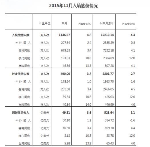 一、2015年1-11月入境旅游總體發展狀況