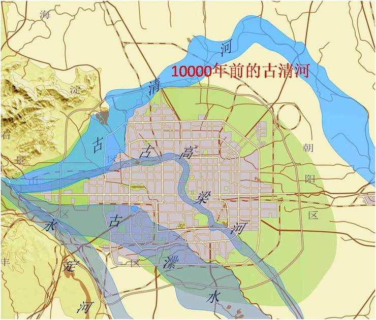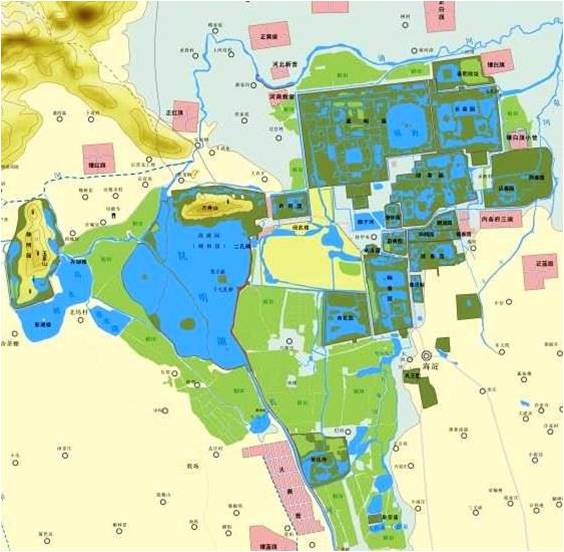 10000年前,永定河由石景山出山后流向東北,走清河河谷,匯入溫榆河。它在圓明園一帶形成一條3~4公里寬的河谷低地,人們將這條永定河故道稱為“古清河故道”,這條故道大概結束于5000年前左右,它所形成的低地稱為“清河洼地”,侯仁之先生稱之為“巴溝低地”。圓明園、頤和園、暢春園一帶即坐落于清河洼地中。