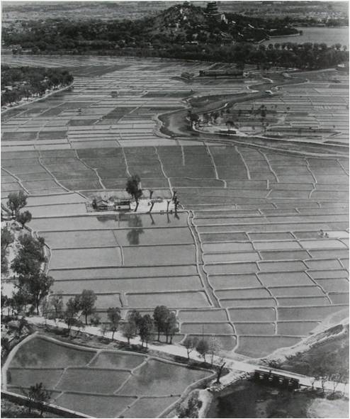 清代不但在海淀御園周邊種植稻田,在園林里面,也開辟有稻田。除了香山靜宜園以外,其余的幾個皇家園林——包括玉泉山、清漪園(頤和園)、暢春園、圓明園,里面均有稻田分布。