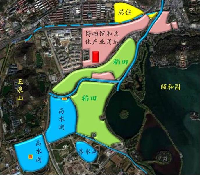 不過比較遺憾的是,園外園綠地建設方案,與稻田景觀的恢復尚有較大距離。園外園工程一期投入1.85億元,拆遷花費3億多元,總計投入5億多元。園中只恢復了少量稻田,卻增加了過多的現代園林要素——在稻田舊址上新開辟了大片湖泊,造出假御路,新設多座小廣場,又挖開玉河河堤舊址建設石舫,架設水泥大橋等。對于這片京西稻原生地來說,不免畫蛇添足。實際上,此處的綠地設計宜做減法:恢復原有稻田,利用南水北調工程恢復高水湖和養水湖,作為備用水池;重建界湖樓等節點建筑,再現乾隆詩文中所描繪的如詩如畫景象。這樣,既能節約資金投入,又可恢復歷史景觀和文脈,一舉多得。還可在此基礎上,建設一座京西稻博物館。現在雖投入巨資進行建設,卻與恢復歷史景觀的機會擦肩而過,失之交臂。我們只能希望今天的園林建設不要對稻田、堤岸遺址破壞過大,給后人留下恢復歷史景觀的空間。