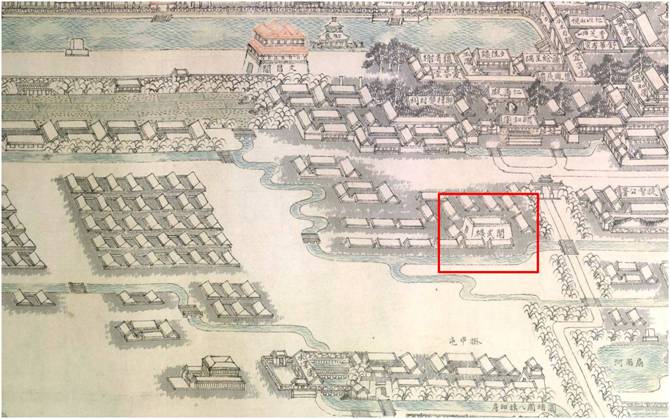 清代圓明園大宮門前的扇子河(岳升陽繪)