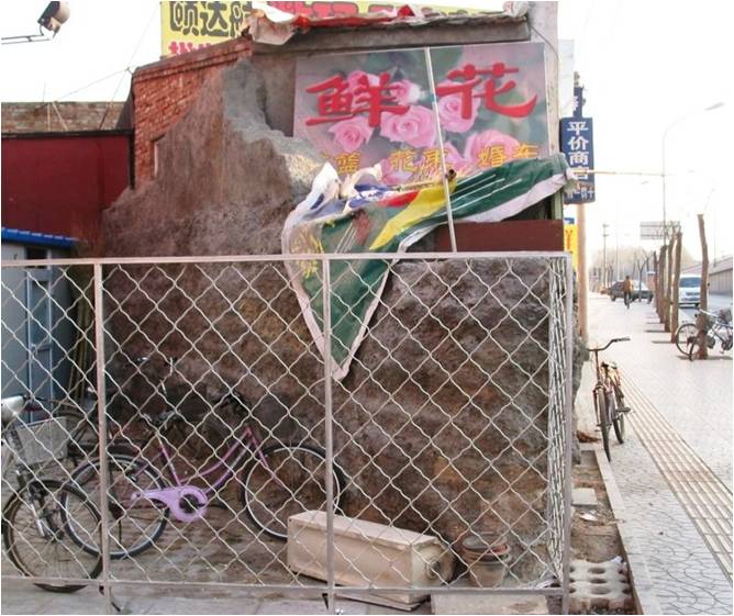 一畝園的南邊有虎城,這是清代皇家園林飼養老虎的地方。今天這里仍然保留有“虎城”這個地名,并且仍存有一段虎城的殘墻。殘墻現在被包裹在民間小店鋪里。今后規劃時,應該考慮把虎城遺址保留在街邊綠地中。