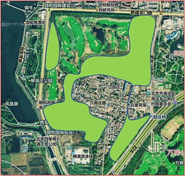 六郎莊是三山五園地區的重要古村落,現在已拆遷,準備打造為綠地。村的周圍曾是京西稻田,現在是高爾夫球場。六郎莊拆遷后,曾有人計劃在此擴建高爾夫球場,后來被領導否決。六郎莊地區作為京西稻的主要種植區之一和頤和園外的著名古村落,最好的方式,是保留村落主體部分的原有格局,保護重要文物古跡,用來發展文化設施和文化產業,并恢復部分京西稻稻田景觀。現狀六郎莊的文物已經保護下來,并正在進行修繕,這為六郎莊的改造打下了良好基礎。