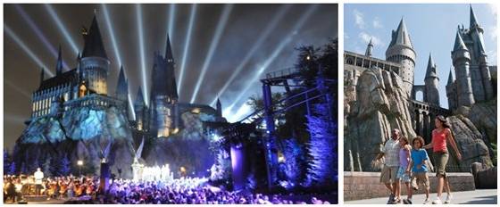 以“哈利·波特”系列小說為藍本,在英國倫敦和美國奧蘭多分別創(chuàng)建的哈利波特主題公園,再現(xiàn)了小說和電影中的場景和情節(jié)。根據(jù)羅琳原著的故事和角色設計,樂園中利用書中最具代表性的地點和場景情節(jié)制作游樂項目、互動景點、商店、餐廳及其他游客從未體驗過的新奇項目,無論場景工藝、創(chuàng)意方式、設計精準程度都與現(xiàn)代科技相結合,體現(xiàn)了主題公園的最高水平。