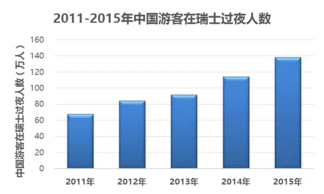 2013年和2014年時(shí),中國成為瑞士海外第五大客源市場(chǎng),也是瑞士亞洲第一大客源市場(chǎng)。而瑞士國家旅游局也雄心勃勃地公布了其2020年在中國市場(chǎng)的目標(biāo)——中國游客在瑞士過夜次數(shù)達(dá)兩百萬夜次。