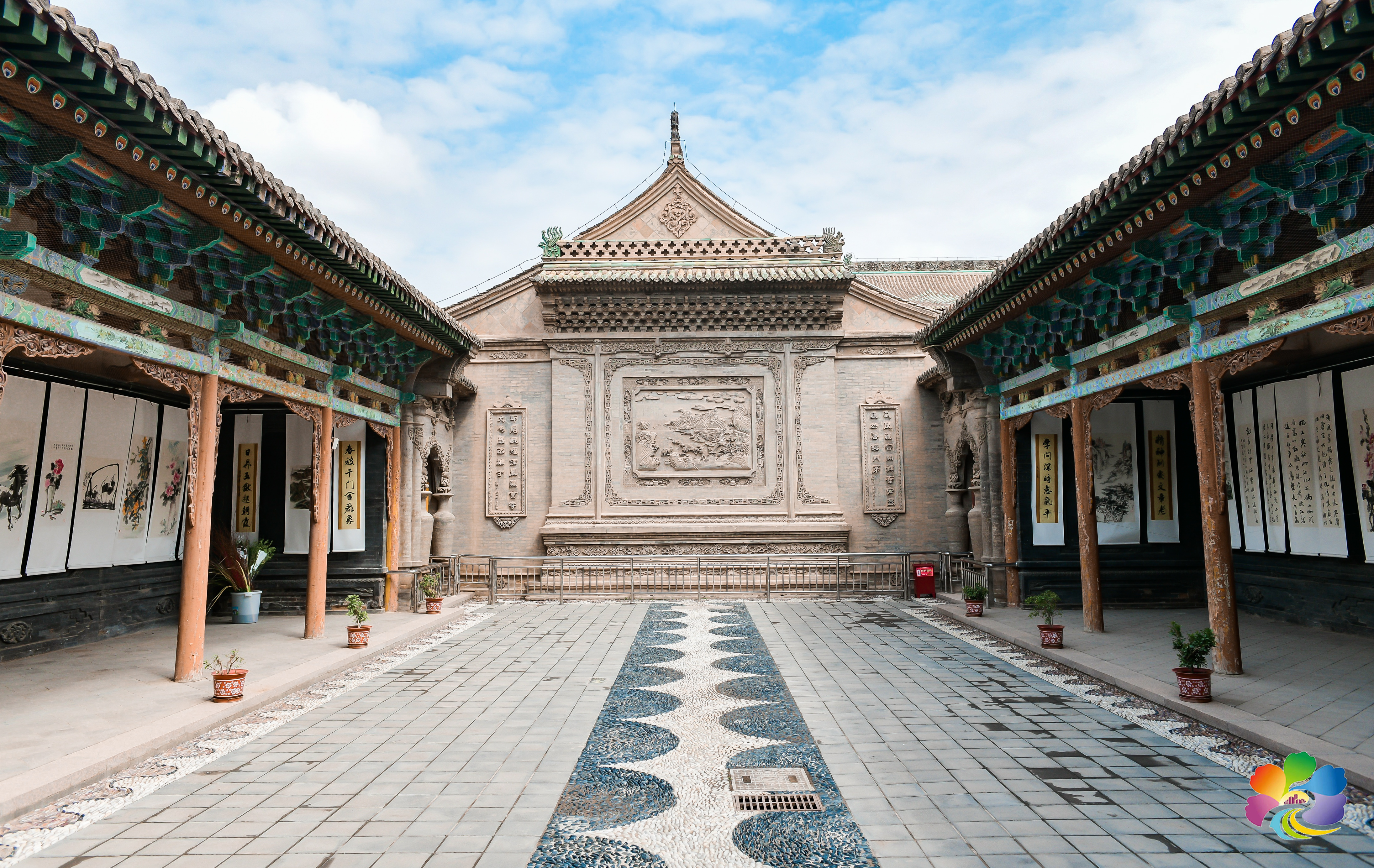 看臨夏磚雕不能錯過東公館。東公館院內保存著189幅精美絕倫的磚雕作品,其中最具代表性的就是位于東公館天井江山迎賓壁之上的日出泰山圖。